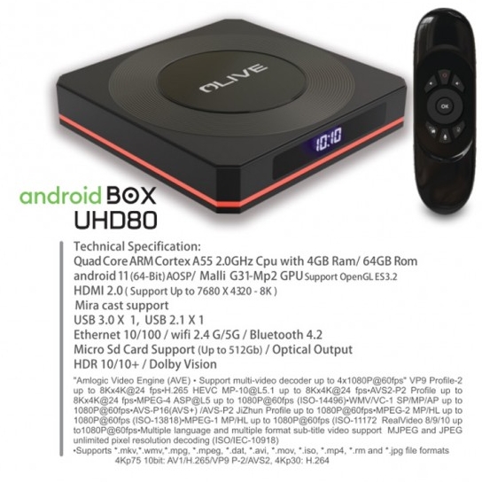اندروید باکس اختصاصی اٌلیو OLIVE مدل UHD80